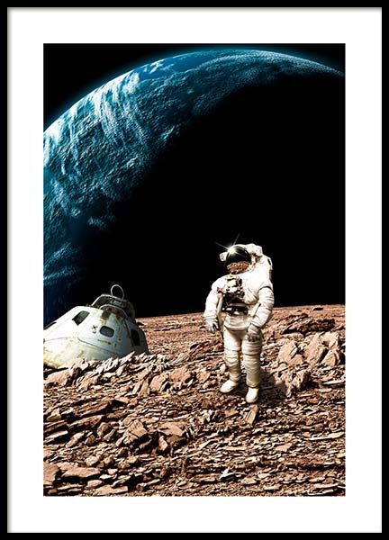 Astronaut On Moon Affiche
