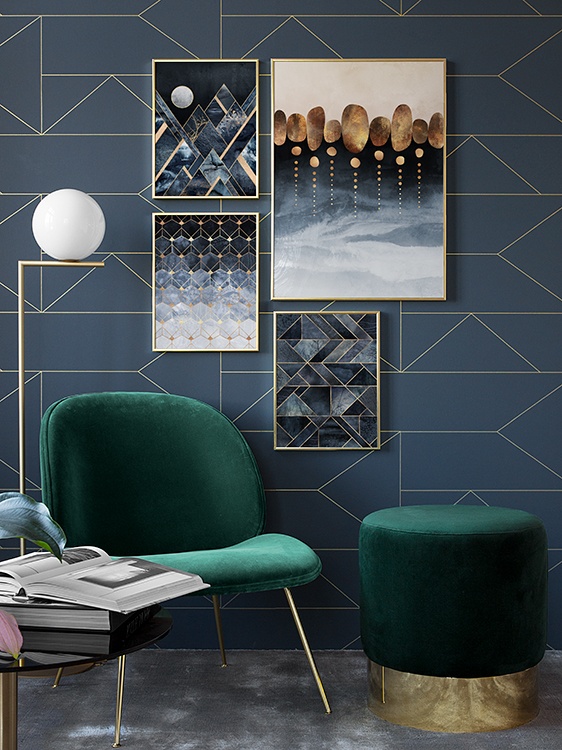 Le motif a été créé par Elisabeth Fredriksson. Cette belle affiche au motif graphique dans des tons de bleu avec des détails dorés fera un bel effet dans votre intérieur. Donnez vie à vos murs et une touche personnelle à votre intérieur avec des affiches modernes que vous aimez et qui vous inspirent. Vous ne savez pas vraiment comment mettre en valeur vos tableaux ? Consultez notre catégorie « Inspiration » pour découvrir des conseils et des idées pour décorer votre intérieur avec des affiches.