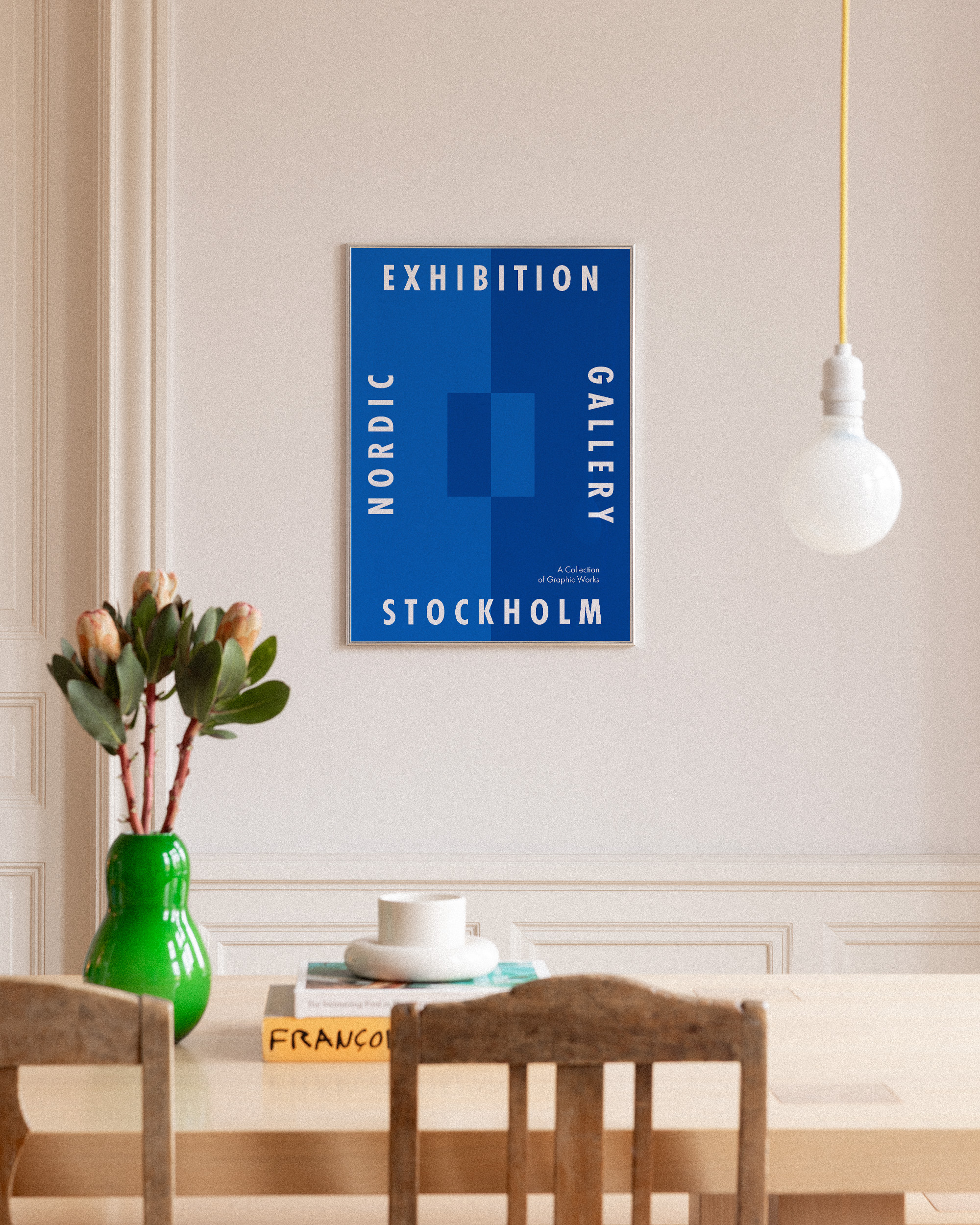 À partir de 7,95 €Une affiche avec un fond bleu et le texte blanc « Nordic Gallery » et « Stockholm ». Parfaite pour une décoration murale moderne.