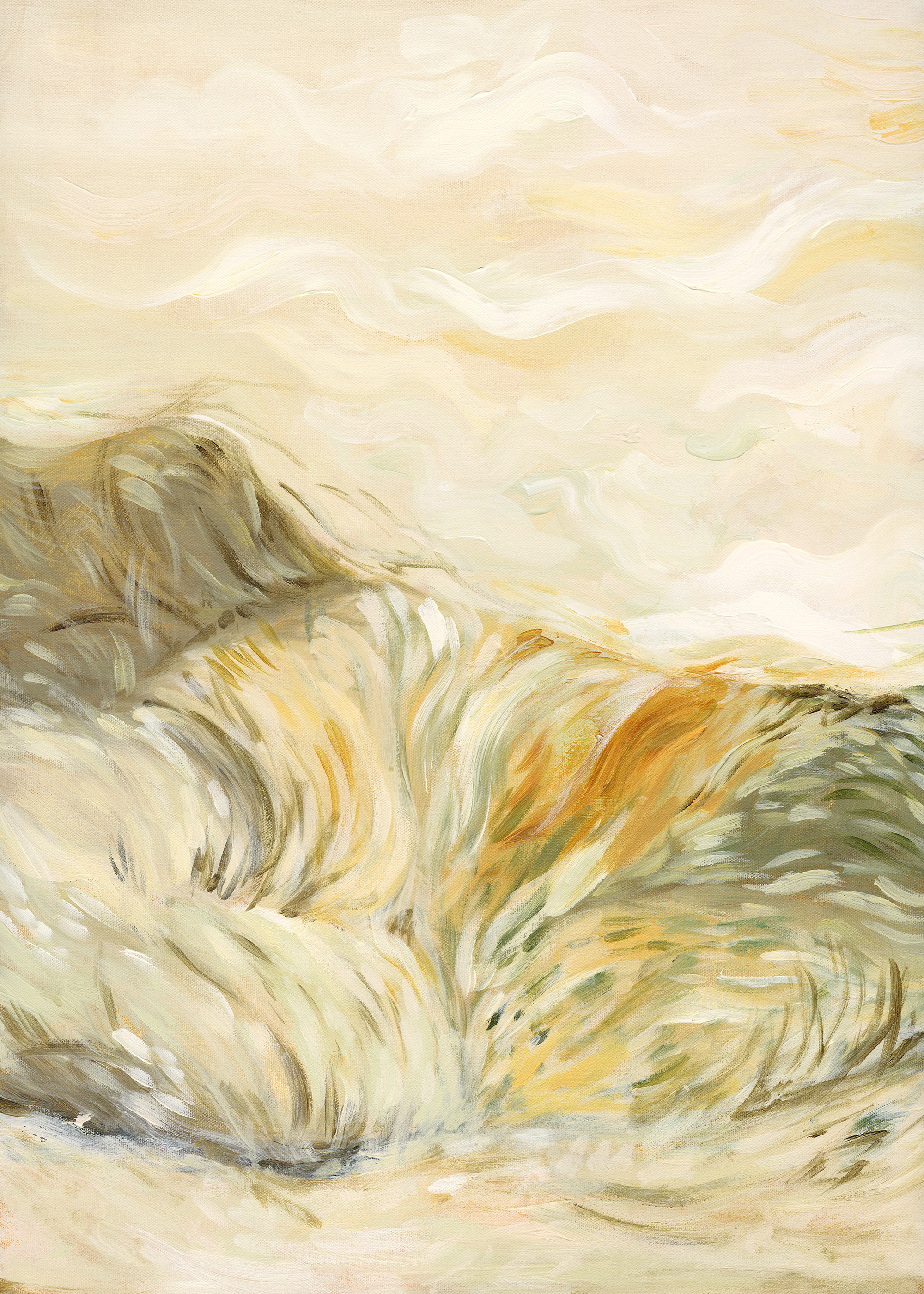 Affiches abstraites aux coups de pinceau tourbillonnants dans des tons terreux et doux de beige, de vert et de jaune. Une décoration murale idéale pour créer une atmosphère calme et apaisante dans votre intérieur.