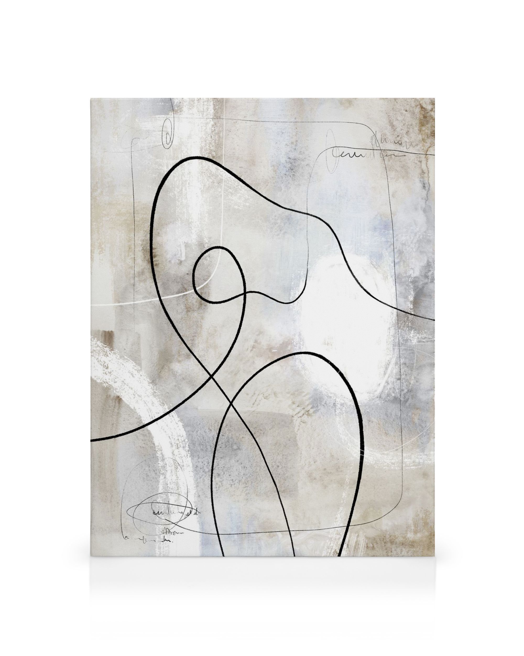 À partir de 24,95 €Une toile abstraite avec des lignes noires créant des tourbillons sur un fond texturé blanc, gris et bleu clair. Parfait pour votre décoration murale.