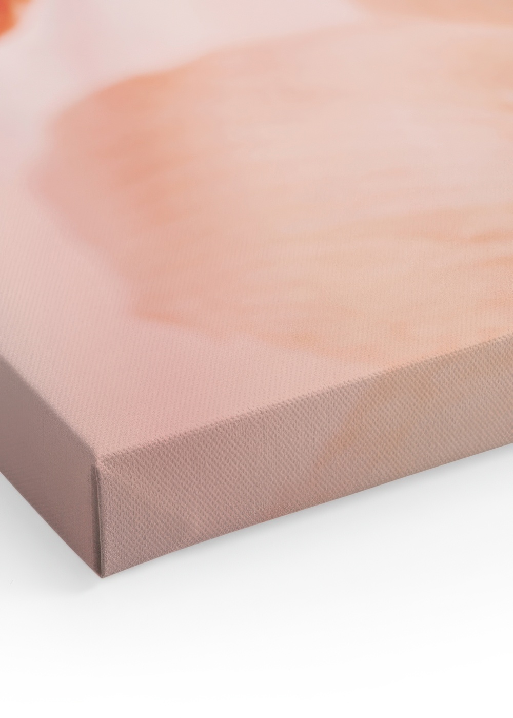 Gros plan sur une toile imprimée de pétales de fleurs roses et blanches délicates avec une qualité onirique. Cette toile florale est parfaite pour créer une décoration murale botanique dans votre maison.