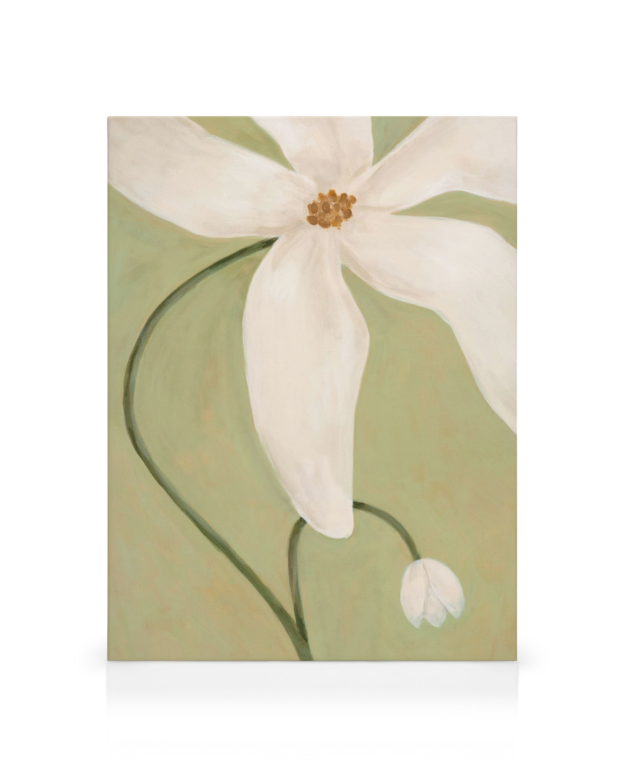 À partir de 19,96 €Une toile représentant une fleur blanche à cinq pétales, avec un centre marron, sur un fond vert clair. Une décoration murale simple et élégante pour votre intérieur.